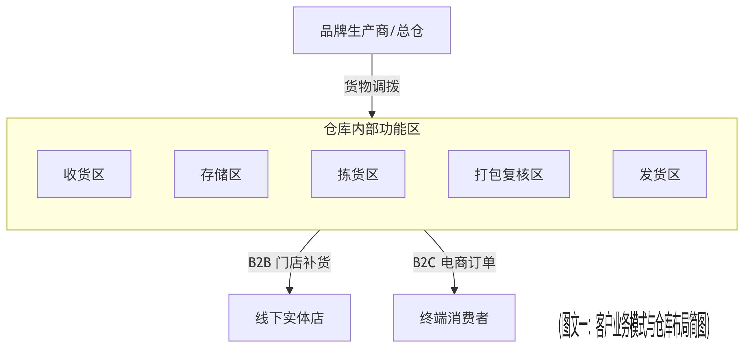 图示:分销中心作为供应链的核心节点,需同时高效处理批量B2B和零星B2C订单,对作业柔性要求极高。